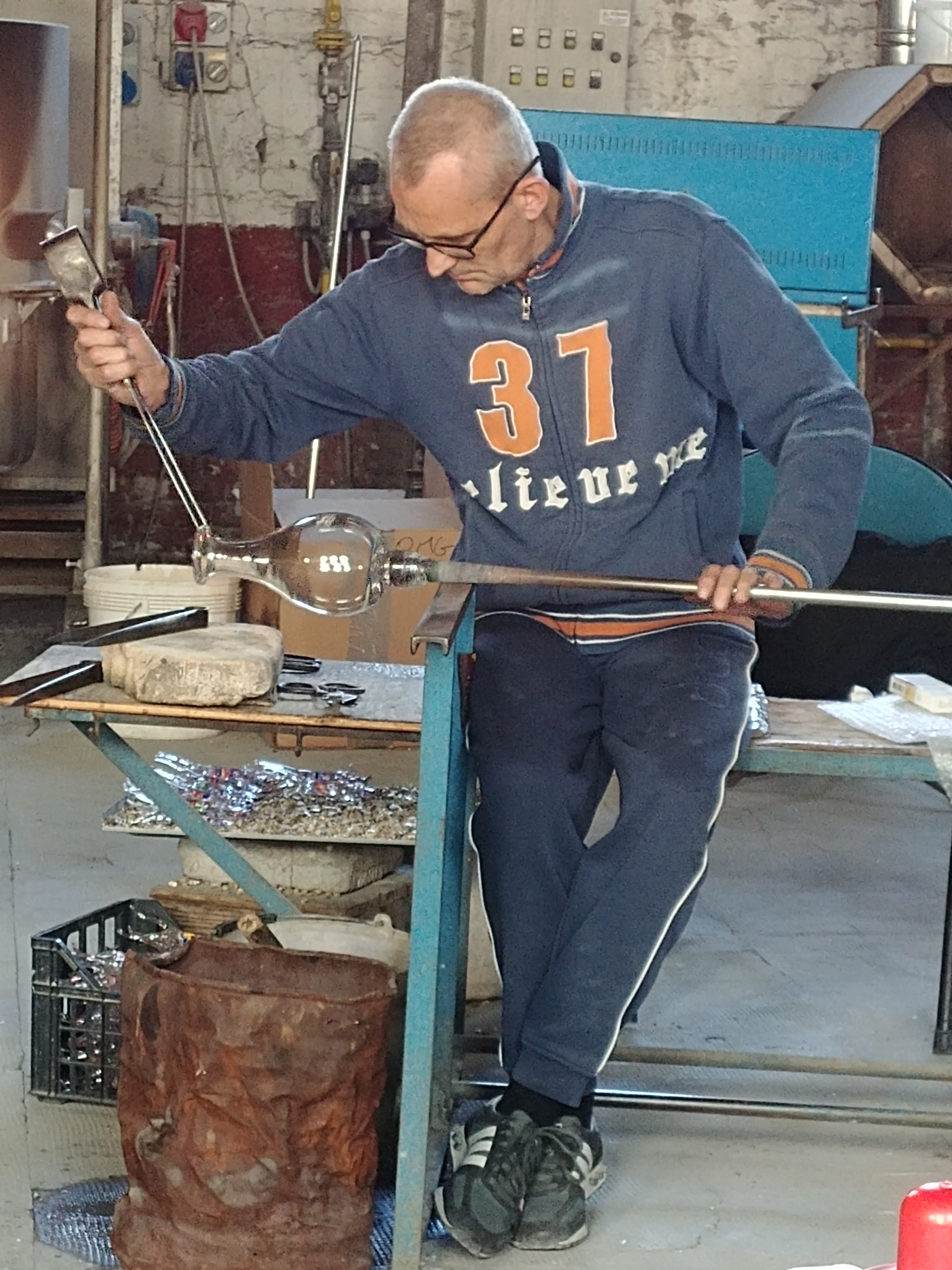 I was blown away by the technique of the glass maker and the skill with which he handled the long iron stick while blowing and twisting and turning the glass into the desired shape.